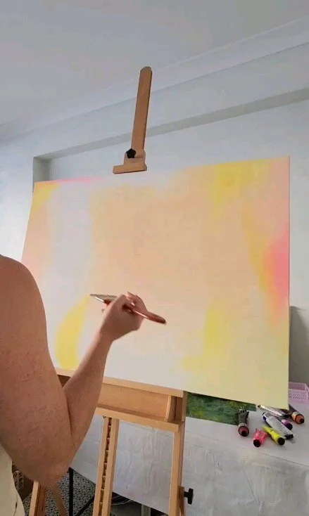 Beginning a painting is always my favourite part - I love a fresh canvas. With a particular scene in mind I will usually have a strong idea of composition before starting a piece, but then often let intuition guide me which is usually the fun and fast part of the process. Then the painting starts to reveal itself, hinting to me what it needs as I go. Finishing at a slower pace, I enjoy adding layers of detail, and often have quite beautiful ideas revealed to me in the final stages of a painting. When this happens, it seems like the piece comes together by magic, this is very exciting and rewarding for me and somewhat aligns with my aim to capture the intangible magic within our everyday experiences and I hope this resonates with you when viewing my artwork.